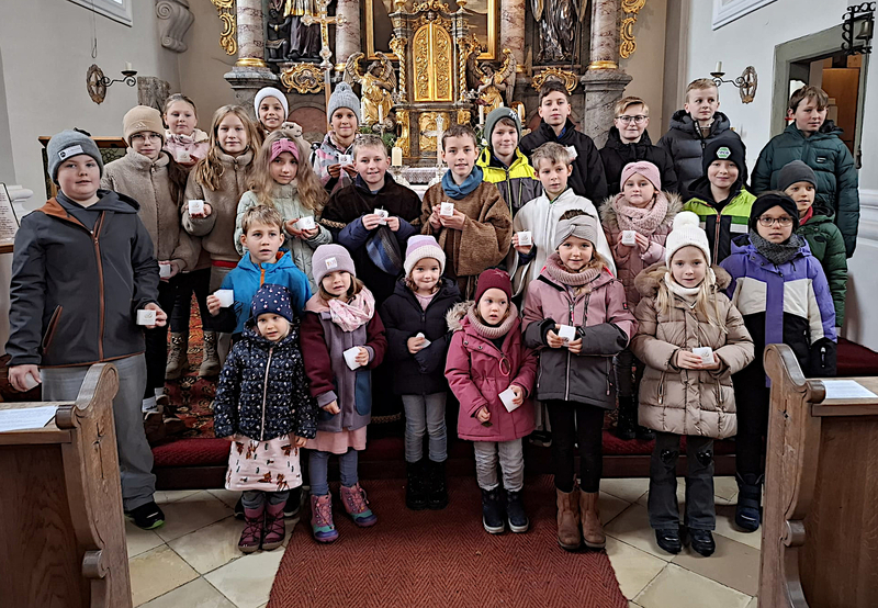 Die Fürbitten waren für alle Menschen, die auf der Suche nach dem Sinn ihres Lebens sind, die mutige Entscheidungen treffen müssen und die sich um andere kümmern - zuhause, in der Schule, im Krankenhaus oder in der Gemeinde. „Mit Andreas unterwegs“ lautete das Thema einer Schlussmeditation der Kinder. Nach dem Gottesdienst erhielten die Buben und Mädchen Kerzen. Zur Verzierung der Lichter gibt es an jedem der vier Adventsonntage verschiedene Motive.