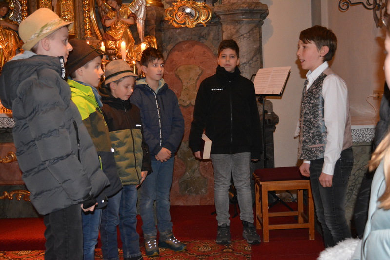 Besinnliche Stunde. Anschließend sprach Stefanie Schuderer ein paar Grußworte an die vielen Besucher und Besucherinnen. Im Lied von Rolf Zuckowski „Winterzeit-Weihnachtszeit“ gingen dann die Buben