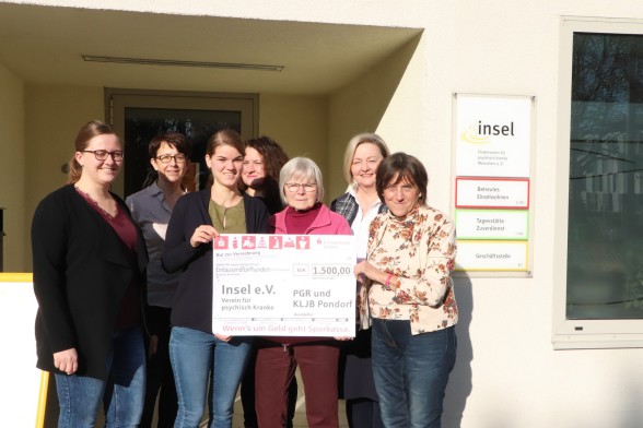 Dem Ingolstädter Verein Insel e.V. überreichte man vor kurzem 1500 Euro. Der Ingolstädter Förderverein für psychisch Kranke ist seit 1987 aktiv und bietet mit Tagesstätte und Insel-Cafe psychisch kranken Menschen Unterstützung an. Monika Brickl, Alexandra Zeller, Franziska Schneider und Antonia Pfaller vom Pondorfer Pfarrgemeinderat machten sich auf den Weg nach Ingolstadt und übergaben die Spende persönlich. Geschäftsführerin Karin Mahncke, 1. Vorsitzende Inge Kunze-Bechstädt und Schatzmeisterin Gertraud Merkl empfingen die Pondorfer Delegation und bedankten sich vielmals für die großzügige Spende. Bei einer Tasse Kaffee gab das Führungsteam dann Einblicke in die Organisation und die Aufgaben der Einrichtung. Seit 1982 gibt es schon eine Angehörigengruppe für psychisch kranke Menschen in Ingolstadt, erzählte Gertraud Merkl als Frau der ersten Stunde. 1987 habe man dann den Verein Insel e.V. gegründet, um den Kranken auch nach dem Krankenhausaufenthalt weiterzuhelfen. Mehr als hundert Personen kamen damals zur Gründungsversammlung in den Spiegelsaal des Kolpinghauses. Viele unterstützen den Verein heute noch. Der Mitgliederstand ist im Laufe der Jahre aber auf aktuell 70 zurückgegangen. Im Prinzip kann jeder, der die gute Sache unterstützen möchte, Mitglied bei Insel e.V. werden, sagen die Frauen. Die Idee für den Betrieb einer Tagesstätte wurde kurz nach der Vereinsgründung geboren. Die Suche nach geeigneten Räumlichkeiten gestaltete sich schwierig. Mittlerweile hat man in der Schäffbräustraße und an der Esplanade zwei Gebäude zur Verfügung, die man entsprechend nutzen kann. Seit 1992 gibt es die Tagesstätte. Mit zwei Mitarbeitern ist man damals gestartet. Im Lauf der Zeit sind der Verein und das Angebot immer mehr gewachsen. Eine ehrenamtliche Geschäftsführung war irgendwann nicht mehr möglich und auch die Anzahl der Angestellten ist auf 32 angestiegen. Neben Reinigungskräften und Verwaltungsangestellten leisten auch viele Sozialpädagogen, Heilerziehungshelfer und Psychotherapeuten ihren Dienst für den Verein. „Wir platzen aus allen Nähten“, sagt Geschäftsführerin Karin Mahncke. Auch wenn die Regierung von Oberbayern wieder sechs neue Plätze zugesagt hat, der Bedarf war weitaus höher. „Immer wieder müssen Interessenten abgewiesen werden“, bestätigte Mahncke. „Die finanzielle Situation ist nicht ganz einfach“, war in dem Gespräch ebenfalls zu hören. Man habe zwar über den Zuverdienst ein bestimmtes Auftragsvolumen und erhalte dafür auch entsprechende Vergütungen. Mit einem Wirtschaftsbetrieb kann man die Tagesstätte aber dennoch nicht vergleichen. Alle möglichen Arbeiten werden dabei von den Klienten - die betreuten Kranken werden nicht als Patienten, sondern als Klienten bezeichnet - verrichtet. Die Verpackung von Bauteilen für einen Elektrogroßhändler oder das Fräsen von Baustellschildern gehören ebenso zum „Arbeitsalltag“ der Klienten wie der Versand von Serienbriefen oder das Folieren von Büchern. „Es ist nicht jeder für jede Aufgabe geeignet“, mussten die Angestellten immer wieder feststellen. Neben den Arbeitsbeschäftigungen gibt es für die Klienten auch eine Malgruppe, eine Werkgruppe und immer mal wieder werden Ausflüge ins Schwimmbad, ins Volksfest oder zum Christkindlmarkt unternommen. Yoga, Wandern und eine PC-Gruppe runden das breite Spektrum ab. Sehr stolz ist man auch auf das Insel-Cafe im Herzogskasten. „Jeden Mittag wird gekocht“, sagt die Vereinsleitung. Ein richtiges Restaurant ist das natürlich nicht, aber zu günstigen Preisen gibt es hausgemachte Speisen, die auch von den Klienten zubereitet werden. Zu den Öffnungszeiten der Stadtbücherei hat auch das Insel-Cafe von Montag bis Freitag geöffnet. Auch über Stammkunden verfügt das Cafe, das im letzen Jahr bereits sein 10-jähriges Bestehen feiern konnte. Zuverdienst, Insel-Cafe, Tagesstätte, betreutes Einzelwohnen und ambulante Hilfe zählt der Vereine zu seinen Hauptaufgaben für die psychisch Kranken. Unterstützung bei Behördenangelegenheiten und anderen Alltagsdingen leisten die Angestellten darüber hinaus. Im Rahmen einer Führung konnten die Frauen des Pfarrgemeinderates dann noch die Sozial- und Arbeitsräume besichtigen. Aus dem Spendenbetrag soll eine Tageslichtlampe für den Speisesaal angeschafft werden, so die Vereinsleitung. Mit dem Bewusstsein, das Geld für einen sinnvollen Zweck gespendet zu haben, machte sich die Delegation wieder auf den Weg nach Hause oder an den Arbeitsplatz.