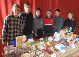 Eine-Welt-Waren haben die diesjährigen Firmlinge aus Wolfsbuch an einem Stand zum Verkauf angeboten. Neben verschie-denen Teesorten konnte man sich mit fair gehandelter Schokolade, Popquins und Seifen eindecken. Als eine der Grundlage ihres Handelns diente der interkultureller Dialog und die internationale Solidarität als Voraussetzung für Gerechtigkeit und Frieden auf der Welt.