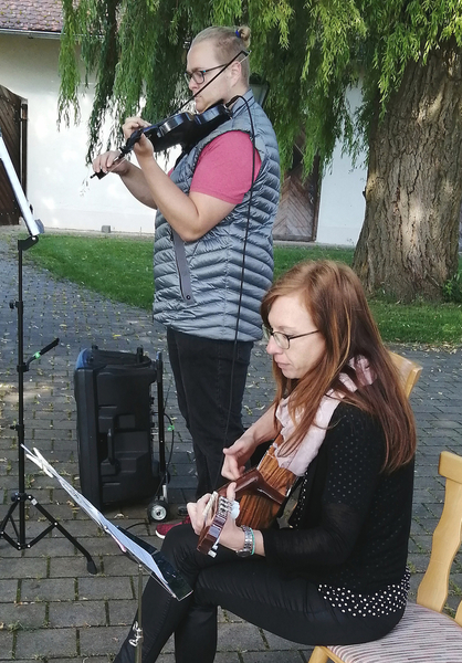 Mit dem Lied "Du bist das Licht der Welt, du bist der Glanz, der unseren Tag erhellt" eröffneten Simone Braun auf der Gitarre und Benedikt Stijns auf der Geige musikalisch den feierlichen Gottesdienst im Freien. Die Lesung aus dem Ersten Buch der Könige, vorgetragen von Silke Fehlner, hatte die Unterscheidung von Gut und Böse zur Grundlage. Das Evangelium nach Matthäus handelte vom vergrabenen Schatz im Acker.