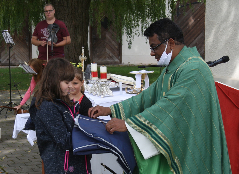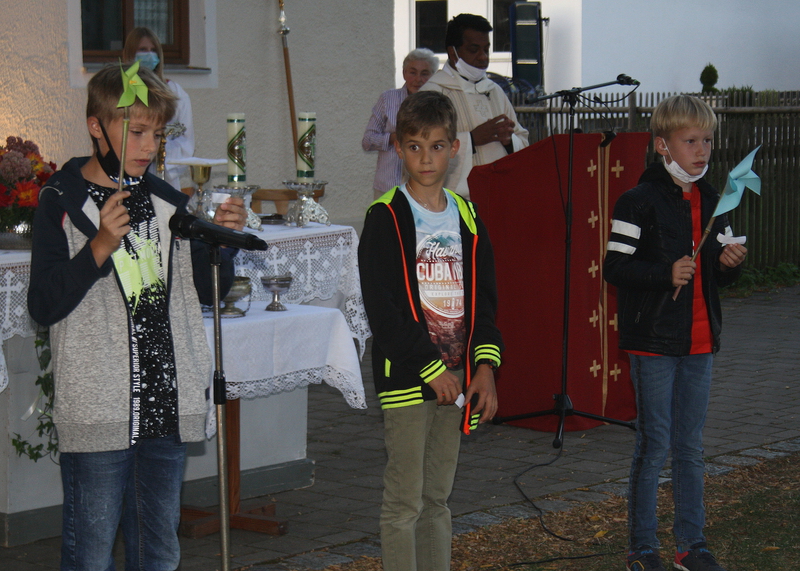 Laut Pfarrer Matthäus Luka haben die Buben und Mädchen seit der Erstkommunion "alles eingeübt, was ein Messdiener können muss". Laut dem Ortsgeistlichen erinnert das Windrad auch an den Heiligen Geist.