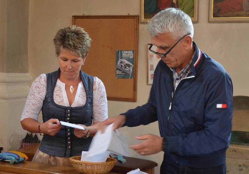 Gleich zwei Personen hat die Sprecherin des Pfarrgemeinderates Wolfsbuch, Stefanie Schuderer am Sonntag nach dem Gottesdienst Danke gesagt - Pfarrer Matthäus Luka und Margaretha Pöppel. Sie tat dies auch im Auftrag der Kirchenverwaltung.