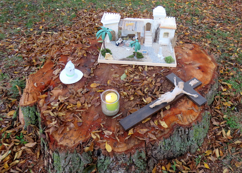 Anschließend sangen die Kinder gemeinsam mit Schuderer das Lourdes-Lied. Zum Glorreichen Rosenkranz hatte das Liturgieteam auf den Baumstumpf der früheren Trauerweide eine Osterkerze, zum Schmerzhaften Rosenkranz ein Kreuz und zum Freudenreichen Rosenkranz eine Krippe gestellt. Den Abschluss der Kinderkirche unter den besonderen Corona-Schutzmaßnahmen bildete das gemeinsame Lied "Segne du Maria".