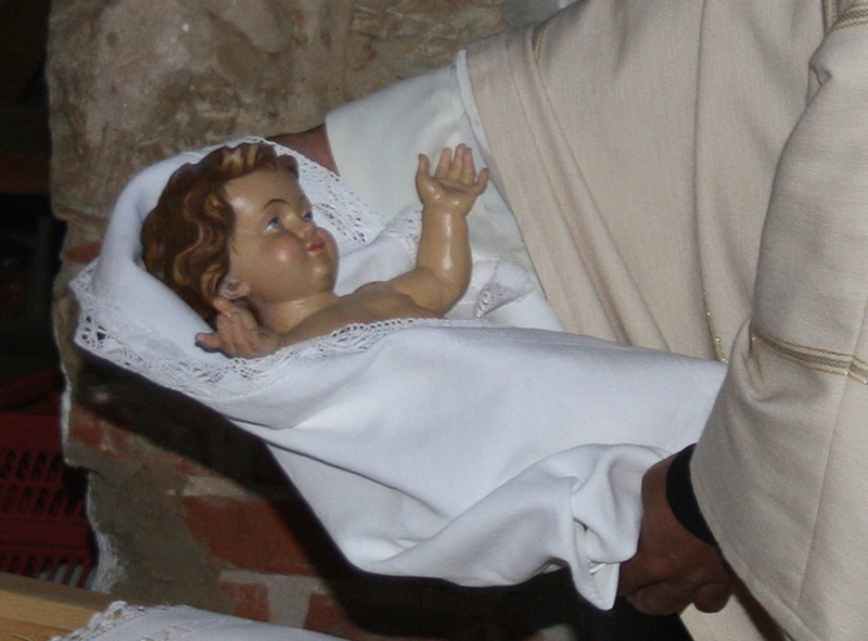 Anschließend spielten die Kinder Quirin, Bastian, Severin, Felix, Louisa, Annalena und Julia in form eines Krippenspiels die Herbergssuche des Heiligen Paares (Emma und Philipp) und das Geschehen in Bethlehem nach. Als Hirten fanden Johannes und Matthias den Weg zur Krippe und legten ihre mitgebrachten Geschenke nieder. "Jesus, du neuer Stern. Lass dein Licht leuchten über alle Menschen , die mutlos sind und keinen Ausweg mehr sehen", betete Bastian in einer der Fürbitten. Die stimmungsvolle Christmette endete mit dem Weihnachtssegen durch Pfarrer Matthäus. Der Geistliche bedankte sich bei allen, die bei der Vorbereitung mitgeholfen hatten.