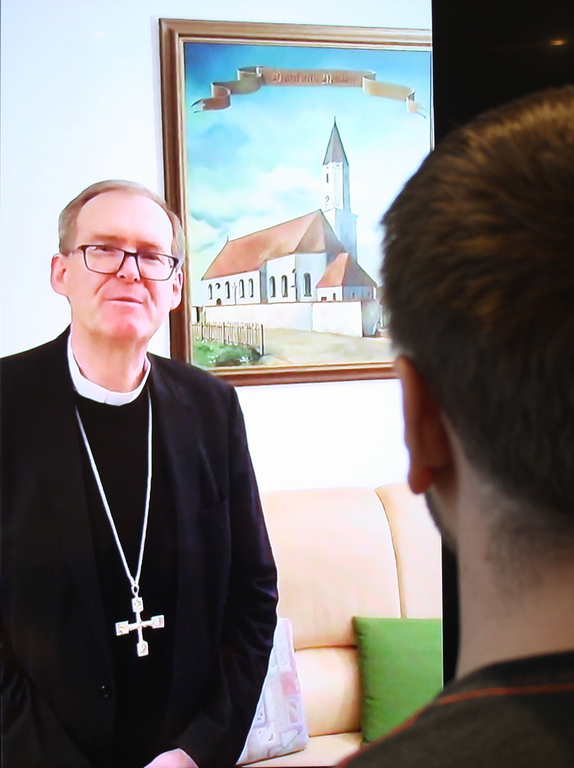 Der in Pondorf geborene Graf empfing die Pfarrangehörigen virtuell in seiner Regensburger Dienstwohnung und gewährte einen Blick in sein Wohnzimmer. Besonders wichtig war ihm dabei "das Weihnachtliche" in den Räumen. Er zeigte unter anderem seine geschnitzte Krippe. Die Darstellung der Geburt des Jesuskindes war vor einigen Jahren ein Geschenk des Regensburger Priesterseminars. Hier hatte der Weihbischof über ein Viertel Jahrhundert gearbeitet. "Man hat gesagt, das passt für mich, als Spiritual, da die Krippenfiguren fast alles kniende, betende Figuren sind", erläuterte Graf.
