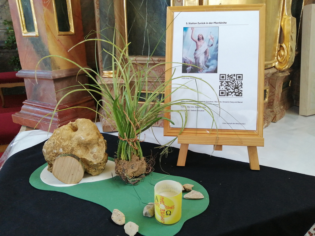 "Wir haben uns überlegt,wie wir die Fastenzeit und die Karwoche trotz der aktuellen Einschränkungen durch Corona begehen können. Und dabei sind wir auf die Idee eines Kreuzwegs in dieser Art und Weise gekommen", gibt die Sprecherin des Pfarrgemeinderates Stefanie Schuderer Auskunft.