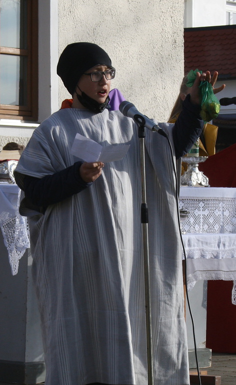 Am Beginn des Livestreams stand das Lied "Ich gehe mit meiner Laterne". Danach stellte Schuderer den Kindern den Heiligen Martin näher vor: "Er liebte alle Menschen - er half den Kranken, gab den Armen Geld und den Hungrigen zu essen". Natürlich durfte der bekannte Abschnitt von der Mantelteilung mit dem Bettler nicht fehlen.