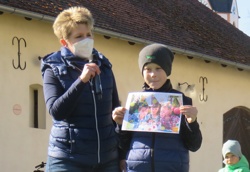 "Einfach Spitze, dass du da bist", sangen die Teilnehmer an der Videoübertragung gemeinsam. Zur Jesusgeschichte aus der Bibel hatte Schuderer einige Figuren aufgebaut - Jesus und seine Jünger sowie eine Mutter mit ihrem Kind. "Vielleicht habt ihr schon einmal den Satz gehört, du störst mich - dafür bist du noch zu klein. In einem solchen Moment fühlt man sich ausgeschlossen und das ist kein schönes Gefühl", meinte Schuderer. Ganz anders sei dies bei Jesus gewesen. Jesus habe jedem einzelnen Kind die Hände aufgelegt und es gesegnet. Und am Ende seien alle froh nachhause gegangen. "Gib uns Kindern immer gute Kameraden zum Spielen", betete Felix in seiner Fürbitte, Annalena wünschte sich "immer eine Schulter, an die man sich anlehnen kann" und Philipp freute sich über das "Gefühl geliebt zu werden". Gestenreich sangen die Buben und Mädchen gemeinsam das Vaterunser-Lied. Zum Schluss betonte Schuderer noch einmal, dass für Gott nicht nur die Großen und die Starken zählen, sondern genauso auch die Kleinen und Schwachen. Die virtuelle Kinderkirche endete mit dem Segenslied. Schuderer richtete den Buben und Mädchen sowie ihren Eltern noch die besonderen Grüße des Ortsgeistlichen Pfarrer Matthäus Luka aus.