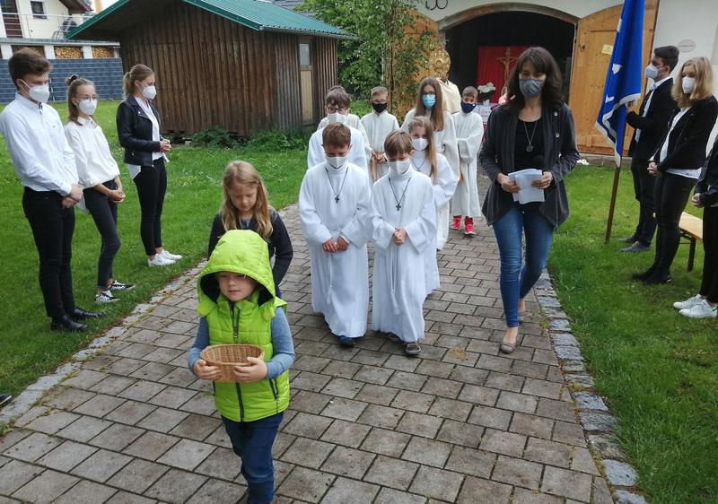 "Wir feiern heute ein großes Fest unseres Glaubens. Wir feiern, dass Jesus mitten unter uns gegenwärtig ist und das gerade in Zeiten der Corona-Pandemie", ging Pfarrer Matthäus Luka auf die aktuelle Situation ein. Laut dem Ortsgeistlichen sollten sich die Gläubigen keinesfalls entmutigen lassen: "Das Fest ist heuer nicht so feierlich, wie in den vergangenen Jahren. Still und verborgen geht der Herr aus der Kirche mit uns. Jede und jeder macht seine eigene Prozession und bringt das Wort des Herrn,das Brot des Herrn unter die Leute. Nach dem Empfang der Kommunion gehen wir im Anschluss an die heilige Messe als lebendige Monstranz nachhause".