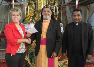 Aus diesem Grund überreichte die Pfarrgemeinderatssprecherin Stefanie Schuderer und der Kirchenpfleger Konrad Schlagbauer dem indischen Würdenträger Geldspenden.