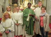 Die Pfarrgemeinde Wolfsbuch hat Pfarrer George Suman verabschiedet. Der Geistliche hatte die Urlaubsvertretung von Pfarrer Matthäus Luka über-nommen, der in seiner Heimat Kerala weilte. Die Sprecherin des Pfarrgemeinderates Stefanie Schuderer bedankte sich mit einem Geldpräsent und meinte: “Ich hoffe die vergangenen vier Wochen haben Ihnen viel Freude bereitet und Sie konnten neue Kontakte knüpfen.