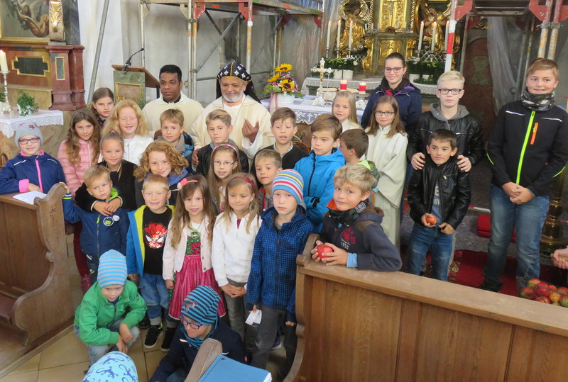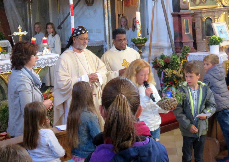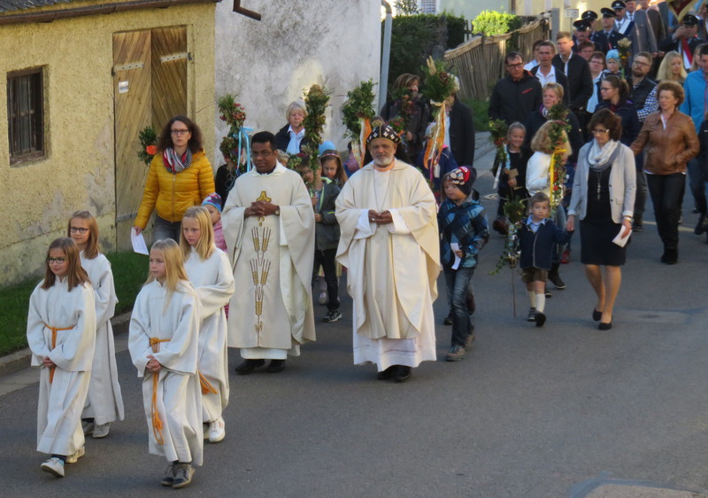 Das Erntedankfest in Wolfsbuch ist auch in diesem Jahr als Familiengottes-dienst in der Andreaskirche gefeiert worden. Die Pfarrangehörigen trafen sich zunächst am Dorfplatz zur Segnung der prächtigen Erntestecken, die von den Kindern beim festlichen Zug zum geschmückten Gotteshaus mitgetragen wurden. Vor dem Hochaltar waren die verschiedensten Ernte-gaben aufgebaut.