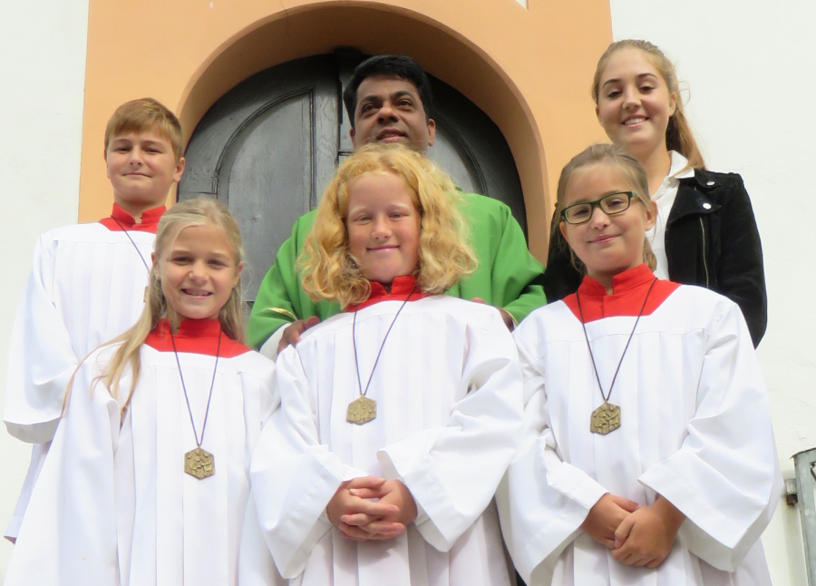 Kilian Deisenrieder, Leonie Fehlner und Christina Karg vier Neulinge auf. Zwei haben ihren Dienst beendet - Luisa Wolfsmüller und Sophia Zanner. Luka bedankte sich bei den Ausscheidenden für ihren Dienst zu Ehren Gottes am Altar und wünschte ihnen viel Glück für die Zukunft. Den neu hinzugekommenen überreichte der Geistliche die gesegneten Ministrantenmedaillen. Die Gottesdienst-besucher honorierten die Bereitschaft der Neulinge, diesen freiwilligen Dienst zu übernehmen mit Applaus.